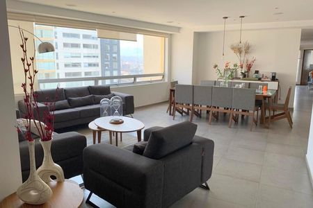 Cuenta con 204m2, con elevador que llega directo al departamento, entrando se encuentra una estancia y comedor, ambos con salida a una terraza de 12m2, muros de símil de piedra español, cocina abierta, alacena, baño de visitas, cuarto de lavado y de servicio. Tiene calentador de paso nuevo.